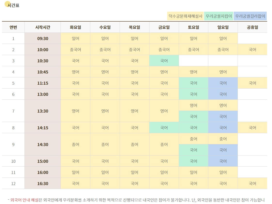 - 심화해설 9:30, 16:30 / 일반해설 11:00, 13:00, 14:30, 15:10