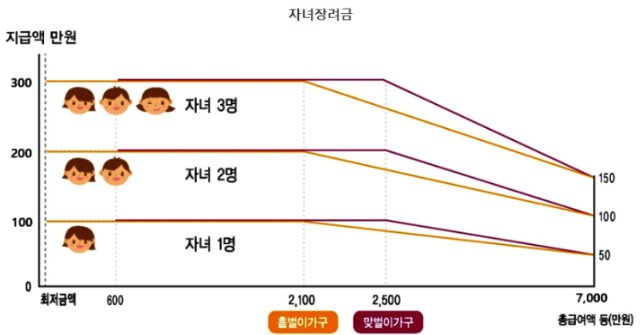자녀장려금 소득요건 상향 | 4,000만 원 --->>> | 7,000만 원으로 변경 |